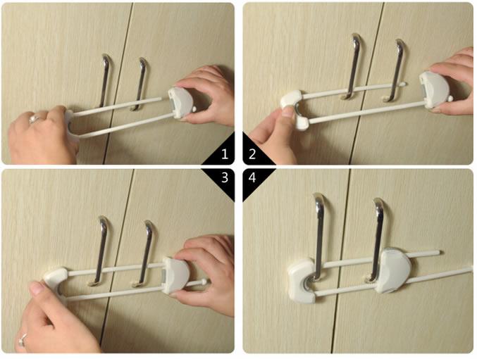 Kulplu ve çift kapaklı dolaplar için üretilmiş çocuk güvenlik kilitidir. Kulplar arasında mesafeye göre ayarlanabilir, güvenliği artırabilmesi amacıyla çift düğmelidir. Kulplar arası mesafe 11 cm olup bu aralıklara kadar rahatça kullanılır.